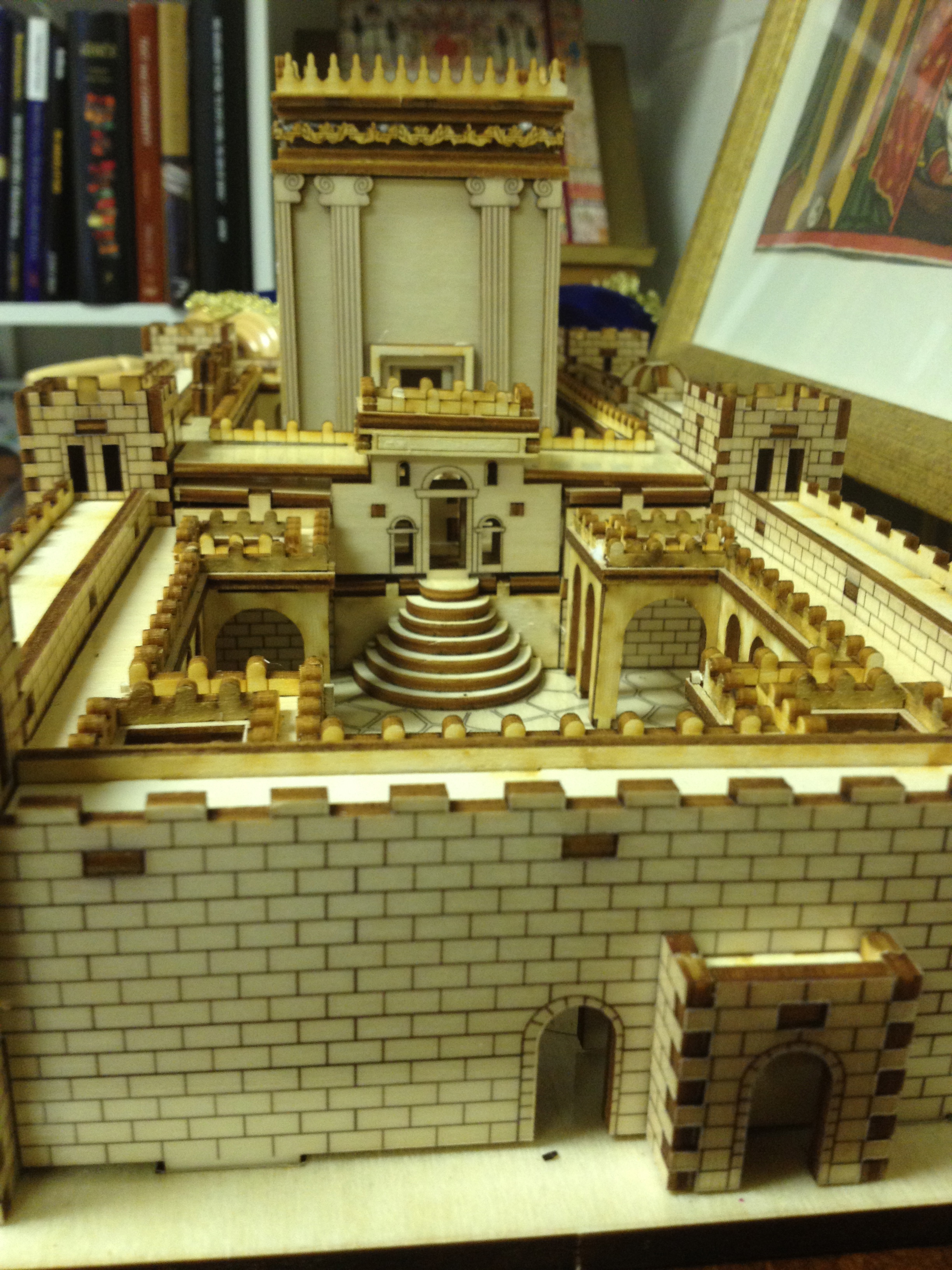 Somewhere on the stairs leading up to Nicanor’s Gate – rich folk have been naming stuff in God’s house after themselves for a long time – on the stairs Virgin would lay her hand on her offering and hand it to the priest who would take it through the gate into the court of the Israelites where the outdoor altar was. Joseph could have gone with him and taken the baby. The wall between the two was open as were the gates. Mary could have watched the sacrifice and offering. On the other side, in the court of the Israelite Men there were cages and kennels and the altar so broad and wide a dozen men could walk around tending three or four different fires, each big enough to burn a whole ox. They had a ramp to drag the dead weight of the big ones up, having slit their throats, hung them on hooks and drained the blood before placing them on the altar.
